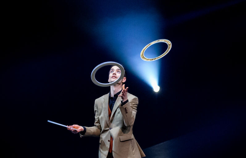 What started as a hobby and pastime moved more and more into the focus of his life. By himself, he learned the basics of various juggling props and steadily improved. Slowly the desire grew in him to become a full-time artist and make a living out of it. After he had done his A-level exam (Abitur), he made hisdream come true and began studying at the